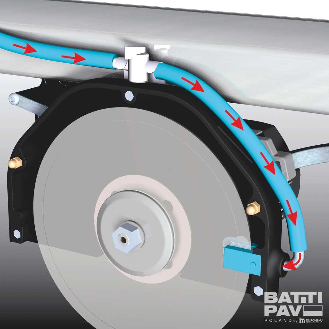 - SpraySystem – to system podawania wody na tarczę diamentową, który zwiększa wydajność cięcia oraz żywotności tarczy diamentowej