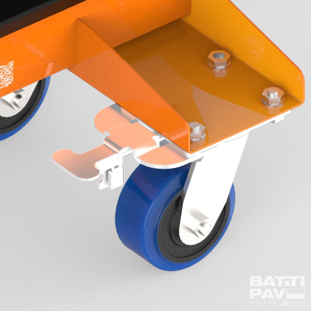 - KOŁA KIERUNKOWE – wyposażony w 2 tylne koła z blokadą obrotu o kącie 45°